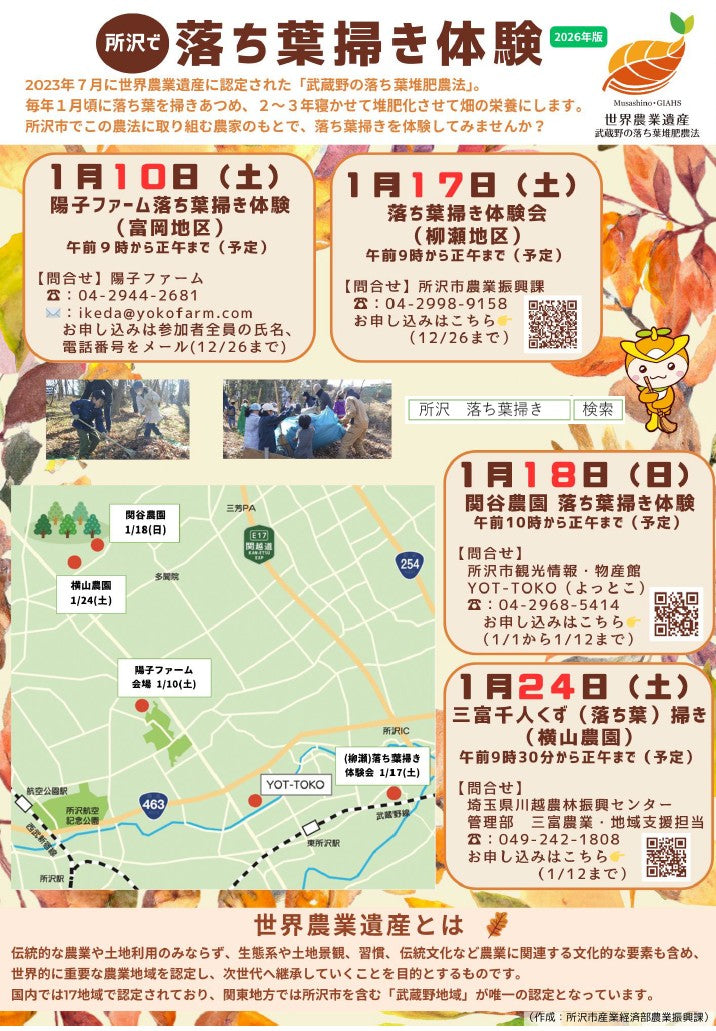 【2026年1月1日受付開始】参加無料!1月18日は所沢で落ち葉掃き体験してみませんか。